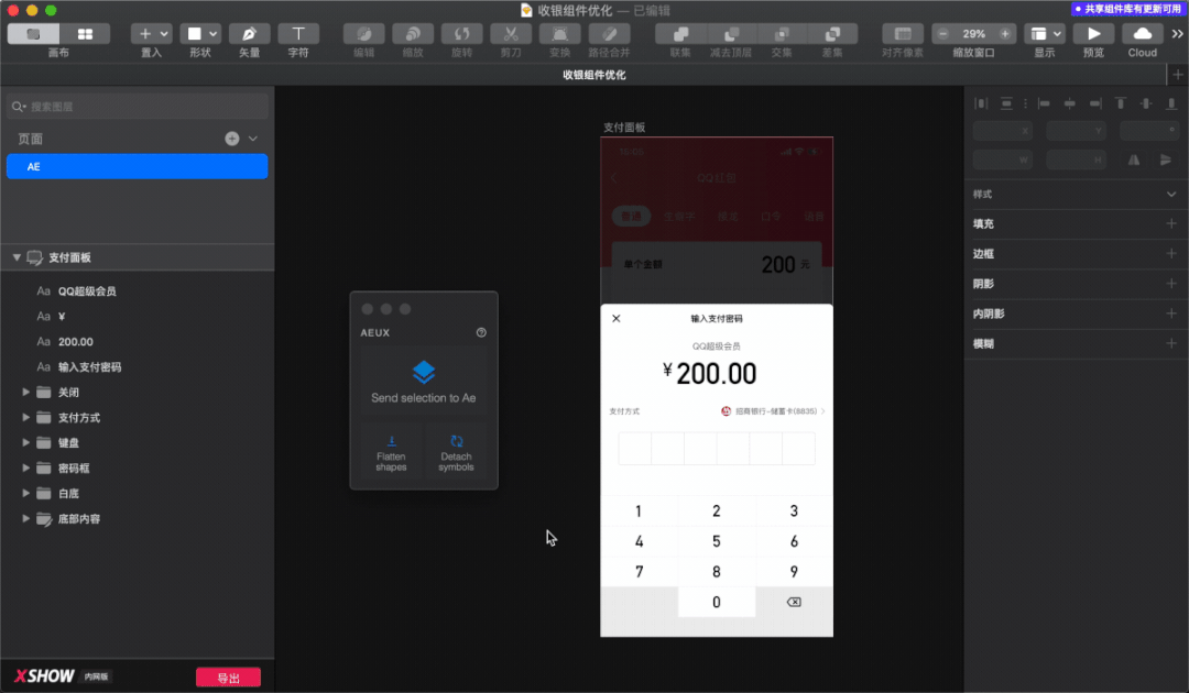 如果说 Overlord 是 AI 和 AE 之间的一座桥梁,那 AEUX 就是 Sketch 和 AE 之间的一座桥梁。导入前在 Sketch 里将图层整理好,导入 AE 后图层关系也是一目了然。